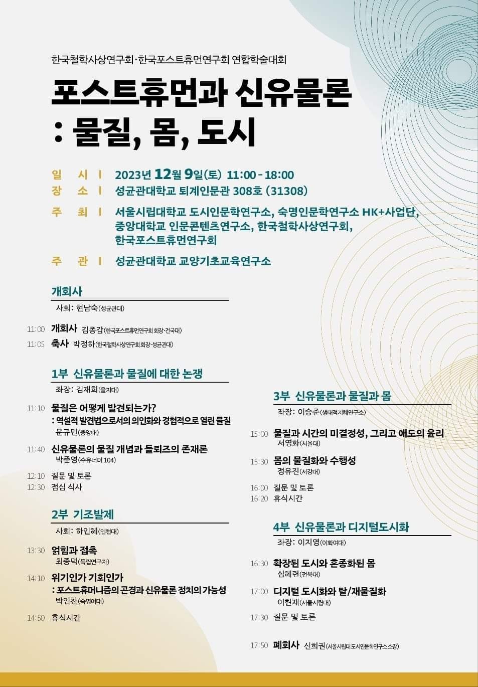 한국철학사상연구회/한국포스트휴먼연구회 2023 연합학술대회 발표장소: 성균관대학교 퇴계인문관 발표날자: 2023년 12월 9일